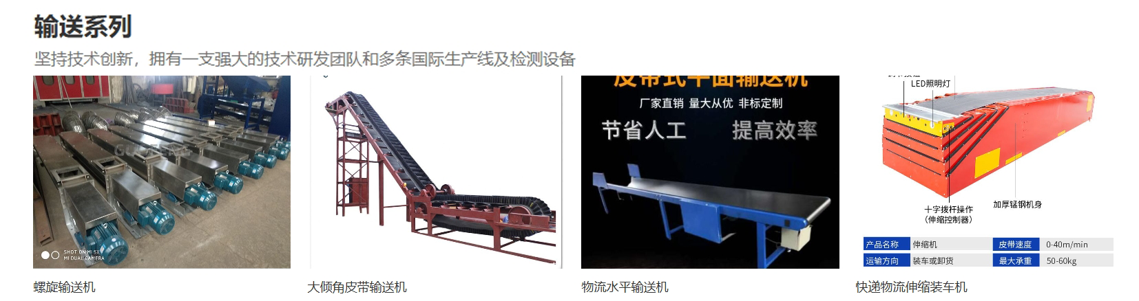 螺旋輸送、皮帶輸送、輥道輸送、垂直輸送、斜管加料機等輸送設備;