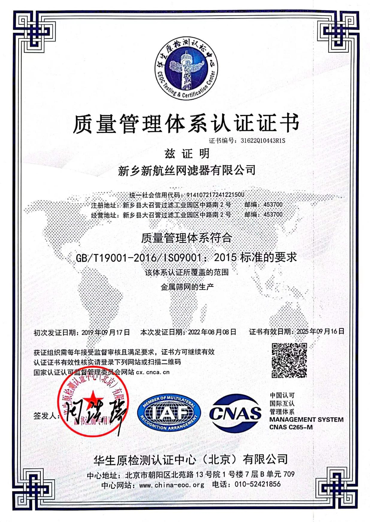質量管理體系認證證書