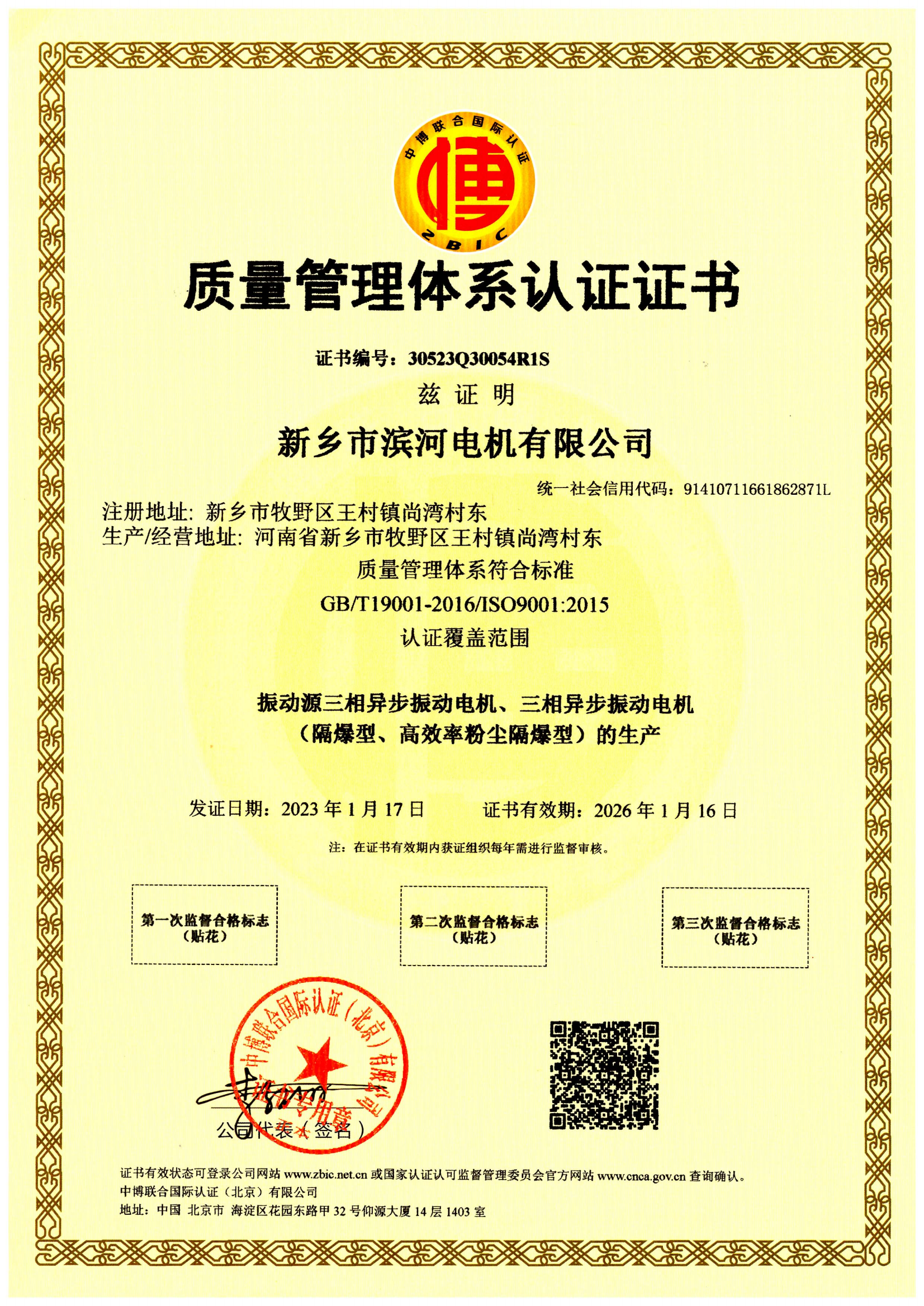 質量管理體系認證證書