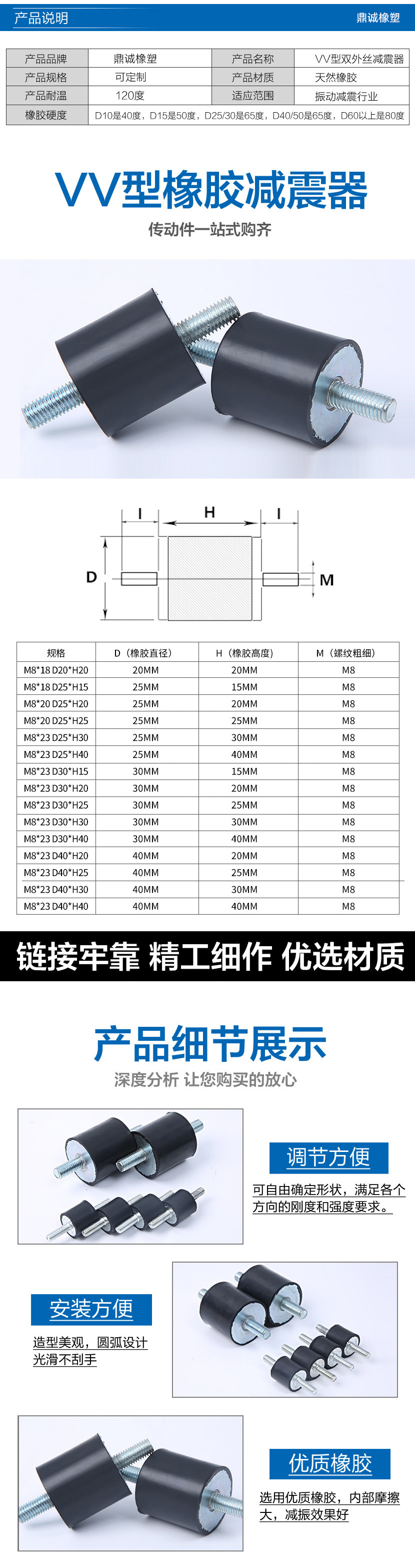 首頁(yè) > 產(chǎn)品中心 > 橡膠減震器VV型雙外絲減震墊減震螺絲防震柱橡膠塊緩沖墊防滑墊