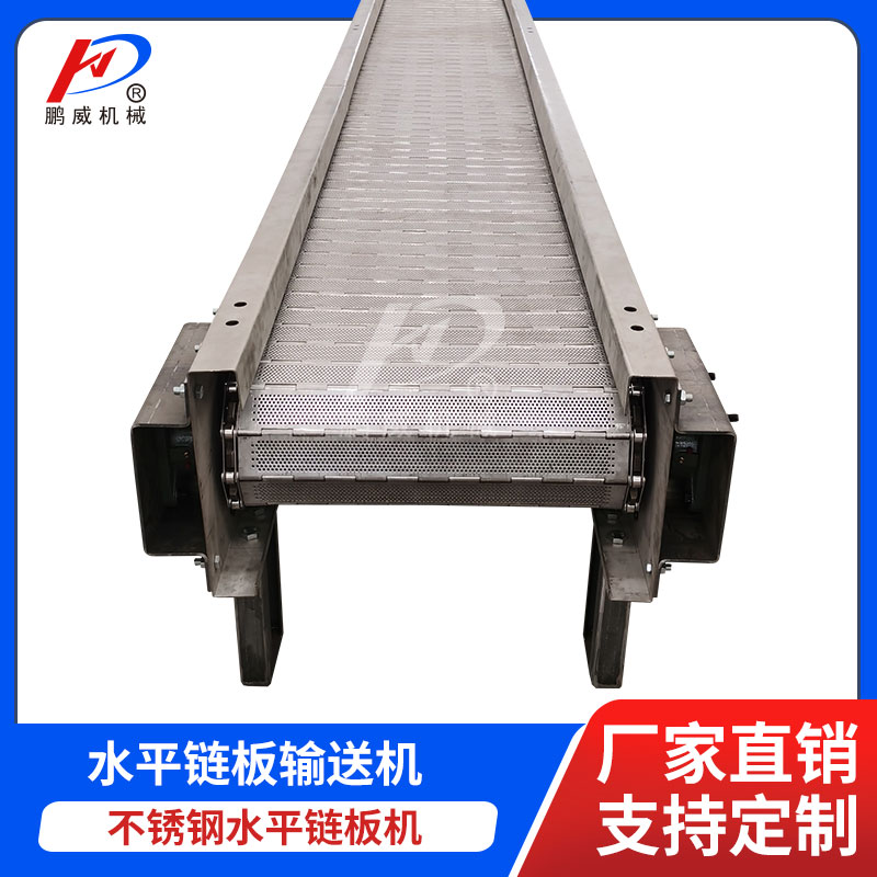 詳細信息 不銹鋼鏈板機: 鏈板輸送機廣泛適于用于食品、罐頭、藥品、飲料、化妝品和洗滌用品、紙制品、調味品、乳業及煙草等的自動輸送、分配、和后道包裝的連線輸送。 板鏈輸送機適用于形狀不規則物品的重載輸送。鏈條選用空心大輥子帶附件鏈條,在兩側同步鏈條的附件上用板狀構件連接使輸送方向形成連續的平板,因而運行平穩。該機與鏈式或滾筒輸送機配合使用可實現轉角輸送。 鏈板式輸送機可以滿足飲料貼標、灌裝、清洗等設備的單列輸送的要求,滿足殺菌機、儲瓶臺、冷瓶機的大量供料的要求,可將兩條鏈板輸送機的頭尾部做成重疊式的混合鏈,使得瓶(罐)體處于動態過度狀態,使輸送線上不滯留瓶子,可以滿足空瓶及實瓶的壓力和無壓力輸送。 規格: 1、直輸鏈板寬度有63.5、82.5、101.6、114.3、152.4、190.5、254、304.8; 2、轉彎鏈板寬度有82.5、114.3、152.4、190.5、304.8。 材質:碳鋼、不銹鋼、塑鋼,根據產品的需要可選取不同寬度、不同形狀的鏈板來完成平面輸送、平面轉彎、提升、下降等要求。