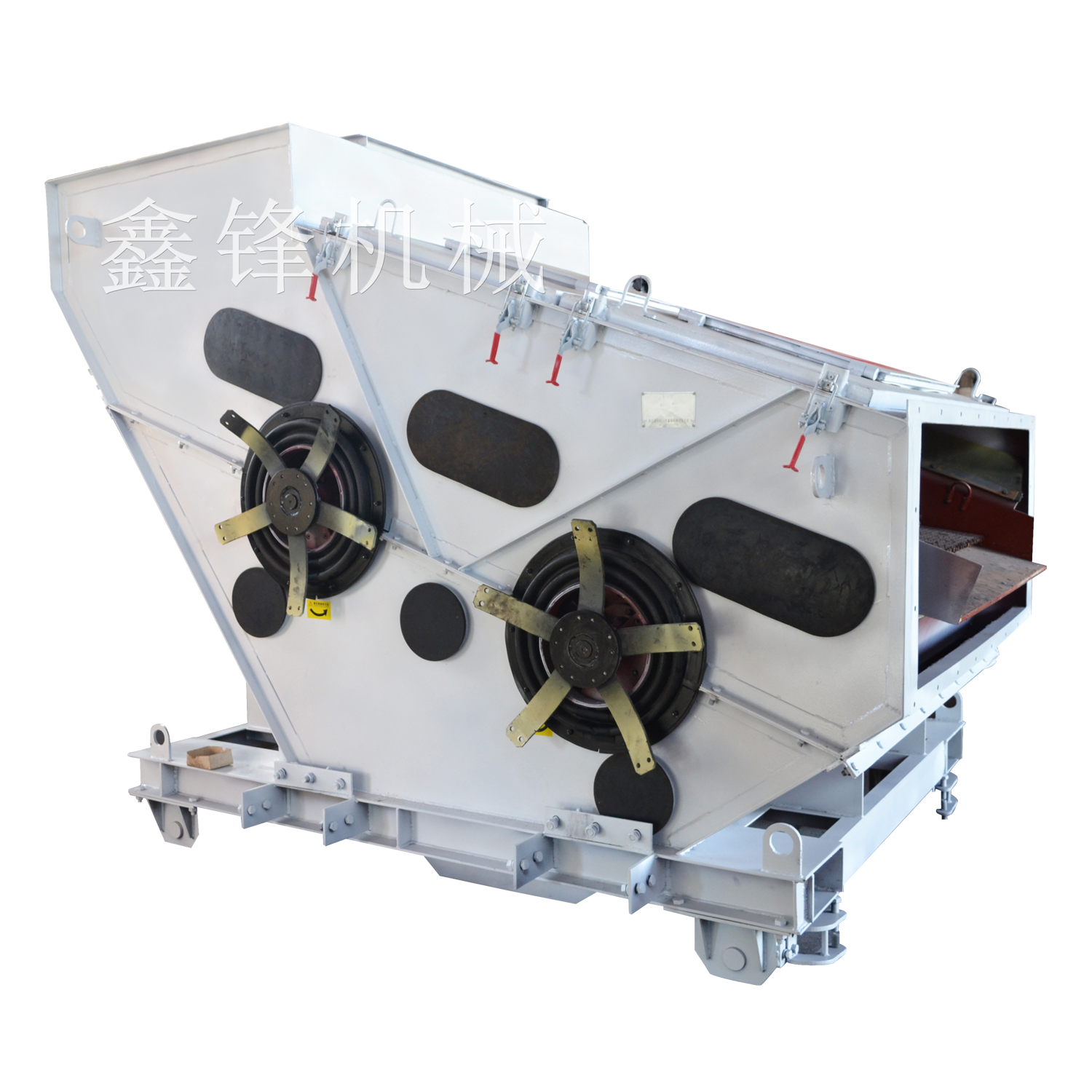 三、安裝 安裝前,要檢查零部件是否完好、齊全。并對篩機安裝基礎進行**清理檢查。 為防止積水和彈簧間堆積灰塵雜料。四個彈簧支承面、傳動平臺支承面應高出地面250-300mm。 安裝基礎上的預埋鋼板和地腳螺栓由用戶自備。四個彈簧支承座下的預埋鋼板須在同一水平面內,在長度方向上的平面誤差不小于5mm。在寬度方向不大于2mm。 彈簧在安裝前,應對外形尺寸及剛度值進行檢查,以保證各組彈簧的剛度和高度保持一致。彈簧安裝好后要求所有彈簧與上下支承面保持垂直。 激振器與篩箱在出廠時已裝好并一起發運,安裝現場須對原裝配情況進行檢查,并重新緊固連接件,若安裝時已超過設備出廠時間六個月,應將激振器拆開將各零件清洗后重新組裝,在軸承的迷宮槽內注入適量的2#鋰基脂。重新安裝激振器時,要保證同軸各組偏心塊的對稱中心線在同一平面內。振動器裝配完畢后,用手轉動偏心塊,如阻力過大或有卡死現象,必須找出原因加以調整。 安裝電機時,要保證電機中心線與篩箱上激振器的中心線同軸。空載時在垂直方向上前者應以后者低2-3mm。 激振器潤滑油管與篩體連接須用軟管。