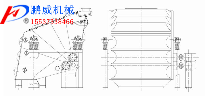概率篩的篩面與普通振動篩一樣作直線振動,可采用雙軸慣性激振器,用兩臺電動機分別帶動。對于體積小、重量輕的概率篩,可作用一對振動電機直接裝在篩箱上激振,兩激振電動機自同步運轉(zhuǎn),產(chǎn)生直線振動。由于篩箱和激振器之間的聯(lián)接方式不同,故有兩種不同激振系統(tǒng)的激振器:一種是激振器直接固接在篩條止,像普通直線振動篩,這種概率篩是線性振動系統(tǒng)。另一種是激振器安裝在平衡架上,平衡架與篩箱之間是彈性聯(lián)接,篩箱用彈簧吊掛,這種概率篩是雙質(zhì)體振動系統(tǒng)。概率篩基本上都采用帶有彈簧的懸吊裝置,重量輕的小篩分機用圓柱螺旋彈簧直接中吊掛裝置進行調(diào)節(jié)。根據(jù)廠房條件和配置的需要,概率篩也可安裝成座式,和直線振動篩一樣,篩箱通過一組彈簧支承在機座上。