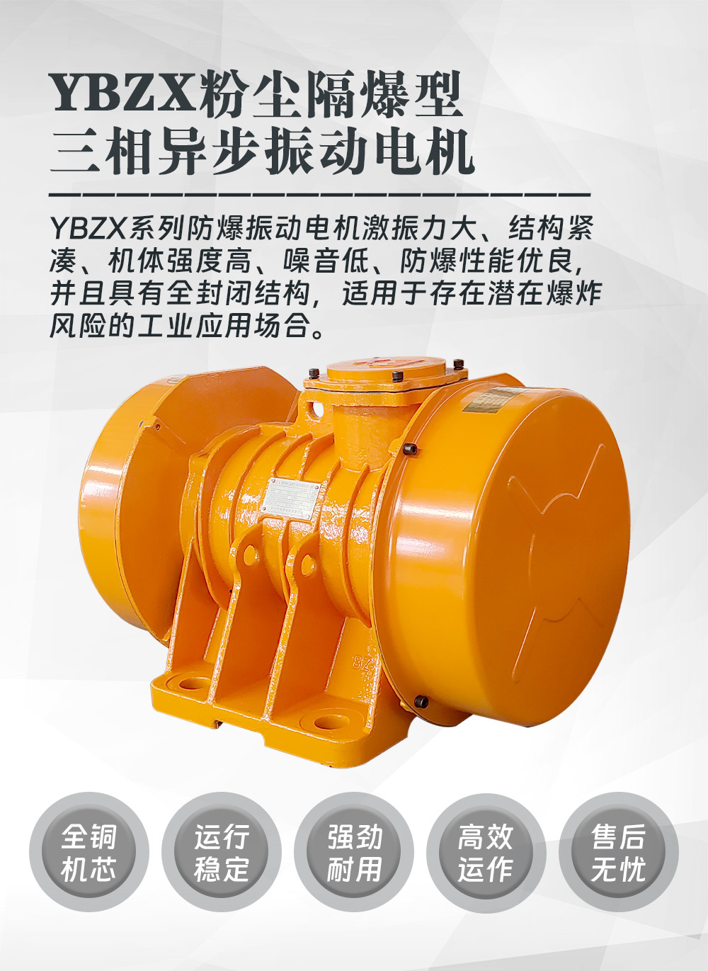 YBZX系列隔爆型三相異步振動(dòng)電機(jī)具有以下特點(diǎn):