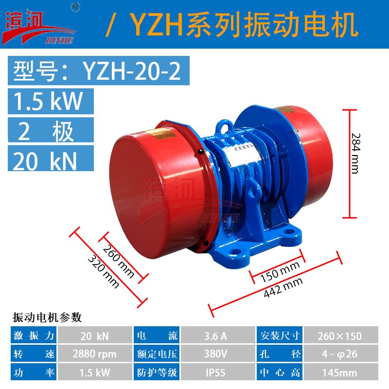 YZH-20-2是新鄉濱河電機有限公司生產的一種三相異步振動電機,主要用于振動給料機、振動輸送機、振動篩分機等振動機械設備。這種電機的特點包括設計科學、結構簡單、低噪音、使用壽命長,并且具有密封設計,可以在任何無防爆要求的環境中工作。激振力容易進行無極調節,可以單機或多機組合成各種振動形式使用,以達到所需工作要求。