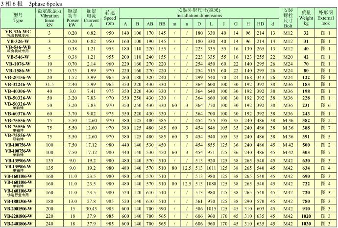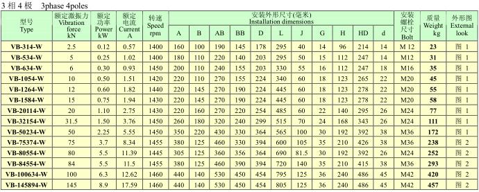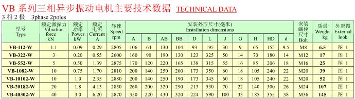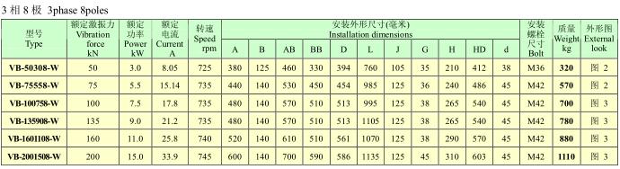VB系列振動電機,功率0.12~25KW,2、4、6、8極,激振力為2.5~300KN,共計56個規(guī)格。