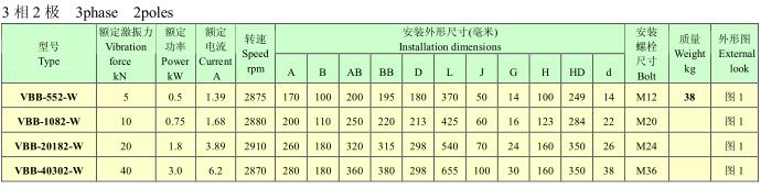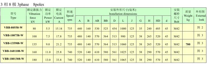 VBB系列隔爆型振動電機,功率0.2~13KW,2、4、6、8極,激振力為3~180KN,共計25個規格。