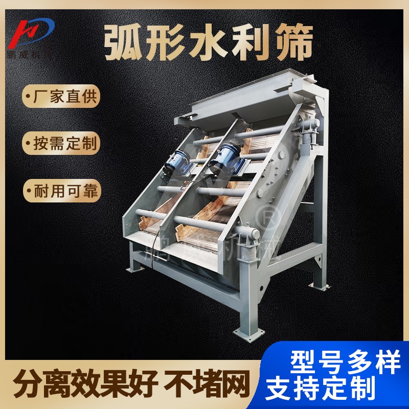 YHS系列弧形篩常用型是一種無動力設備,由一組布置在圓弧面上的固定篩條組成,分級粒度為篩孔寬度的1/2。廣返應用于選煤、選礦、糧食、淀粉、食品、紙漿、橡膠等料漿的濕式篩分和脫介、脫水作業。一般將孤形篩安裝在動力篩前配套使用,以減少動力篩數量或面積。該系列篩機具有結構簡單輕便、占地面積小、分離效果好、物料不易堵塞等優點。該系列篩機為固定式、回轉式和振動式三種,選用回轉式弧形篩時要考慮翻轉篩面所需空間。無特殊要求,篩網材質按不銹鋼制造,篩面寬達3m為雙排。