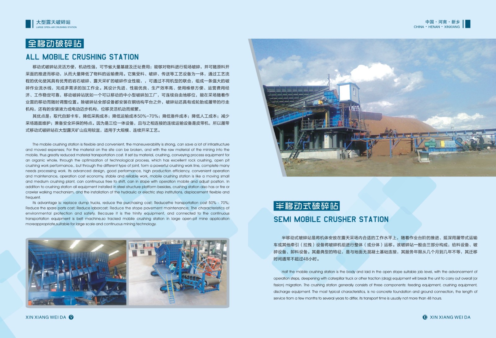 移動式破碎站靈活方便,機動性強,移動破碎站,露天礦破碎設備,可節省大量基建及遷址費用;能夠對物料進行現場破碎,并可隨原料開采面的推進而移動,從而大量降低了物料的運輸費用。它集受料、破碎、傳送等工藝設備為一-體,新鄉市威達機械有限公司,威達機械,通過工藝流程的優化使其具有優秀的巖石破碎、露天采礦的破碎作業性能,可通過不同機型的聯合,組成一條強大的破碎作業流水線,完成多需求的加工作業。