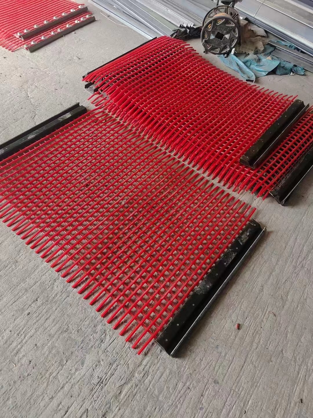 聚氨酯篩網是一種以聚氨酯為質料出產的網狀成品,主要應于洗煤廠、焦化廠、礦山、電廠、疏浚公司、冶金、石油、石化等公司。 聚氨酯篩網是一種以聚氨酯為質料出產的網狀成品.篩板的孔狀為:條縫、矩形、圓形、正方形.酯篩板比不銹鋼篩板一次性投資高(約2倍),但因為聚氨酯篩網壽數是不銹鋼篩板的3~5倍,并且維修和替換次數少,所以總成本并不高,經濟上也是很合算的。