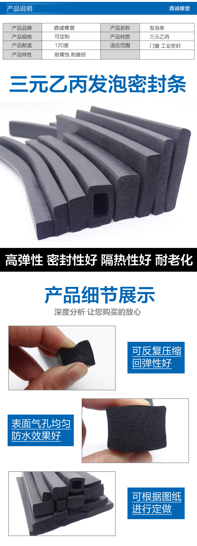 三元乙丙發泡條海綿橡膠密封條黑色方條防水耐腐蝕電機柜船用密封