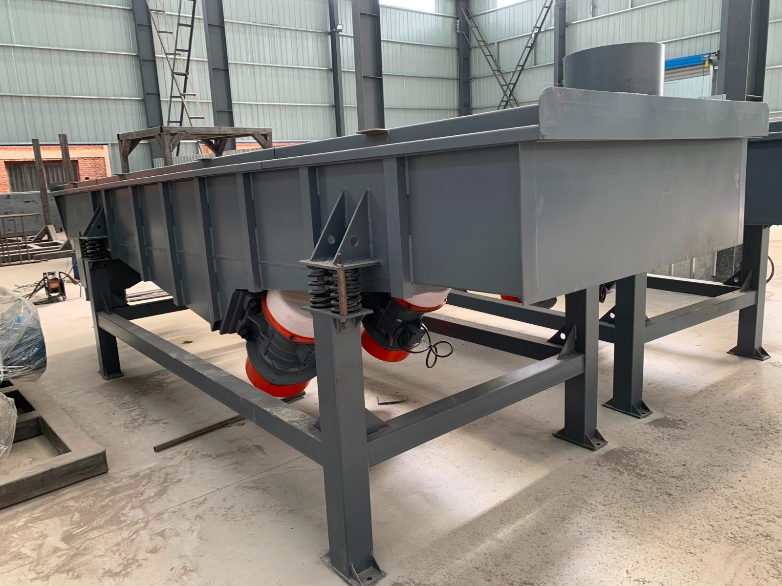 4、減震系統的維護:減振系統也就是我們常說的振動彈簧。該系統是作為直線篩的支撐于降低篩框與底座的摩擦的裝置。日常維護時應注意彈簧是否變形,是否出現裂痕或高低不一,如發現應立即更換或調整。