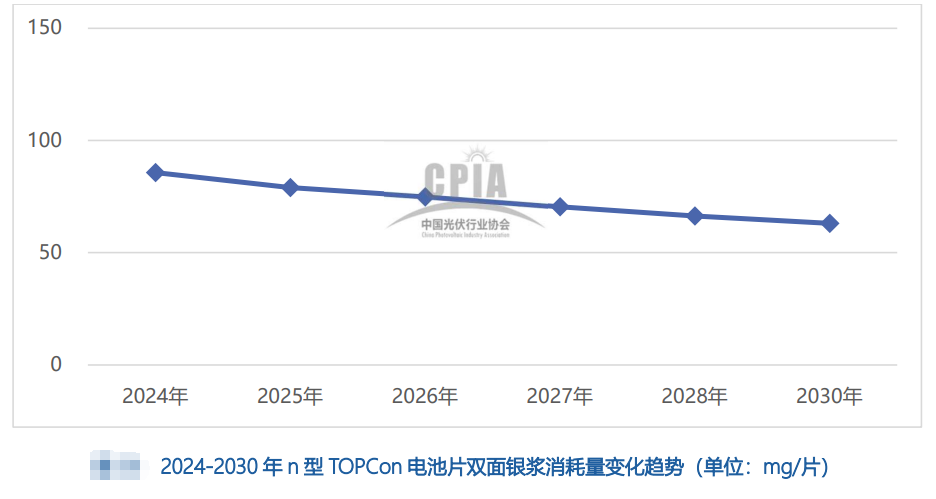 (2)n型TOPCon電池雙面銀漿平均消耗量約86mg/片,由于2024年激光誘導燒結技術(Laser Induced Firing,LIF)對激光選擇性發射結技術(Laser Selective Emitter,LSE)的大規模替代,TOPCon電池已無需使用銀鋁漿;同時由于未來0BB、賤金屬等技術的大規模應用,銀漿耗量將加速下降。