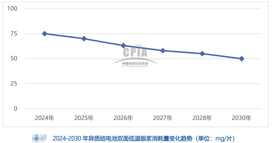 (3)異質結電池雙面低溫銀漿消耗量約75mg/片,目前普遍采用銀含量30-50%的銀包銅技術,未來預計將進一步采用銀含量更低的技術。