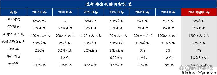 相較于受限較多的貨幣政策,財(cái)政政策更具操作空間,并將在2025年發(fā)揮更重要的支撐作用。面對(duì)經(jīng)濟(jì)增長(zhǎng)壓力,財(cái)政擴(kuò)張不僅有助于對(duì)沖通縮,還能促進(jìn)鋼鐵行業(yè)需求修復(fù)。然而,財(cái)政政策的核心將是“精準(zhǔn)調(diào)控”,而非大水漫灌,重點(diǎn)體現(xiàn)在赤字率提升、專項(xiàng)債擴(kuò)容、特別國(guó)債加碼等方面。