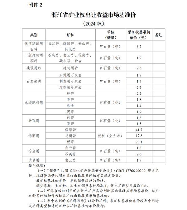 2月21日,浙江省自然資源廳、浙江省財政廳發布了《關于公布浙江省礦業權出讓收益起始價和市場基準價的通知》,《通知》自2025年4月1日起施行。