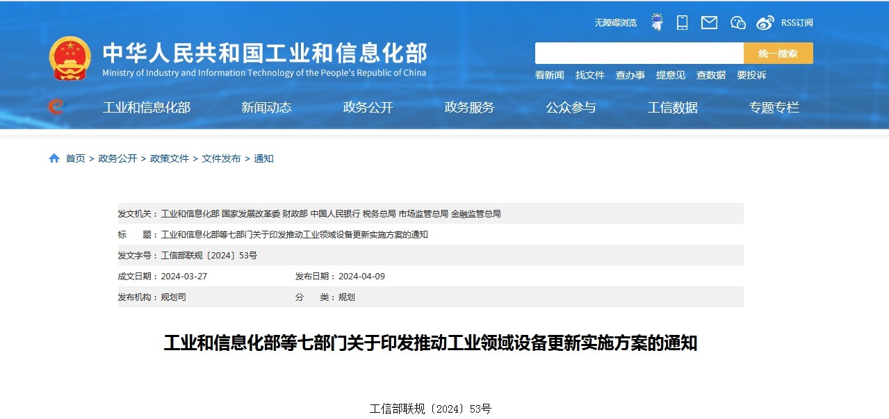 中國粉體網訊近日,工業和信息化部等七部門近日聯合印發《推動工業領域設備更新實施方案》,提出到2027年,工業領域設備投資規模較2023年增長25%以上,規模以上工業企業數字化研發設計工具普及率、關鍵工序數控化率分別超過90%、75%。