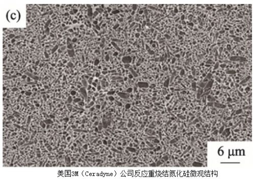 反應燒結(RBS)是最早實現氮化硅陶瓷產業化應用的一種燒結工藝。反應燒結成的氮化硅陶瓷產品不僅具有較好的抗熱震性、抗腐蝕性及優良的電阻性能,而且在1400℃高溫下仍具有較高的強度值(200MPa~350MPa)。此外,反應燒結氮化硅還具有燒結收縮小(≈0.1%)的獨特優勢,可極大減少甚至可省略燒成后的機械加工,降低了其生產成本,而且可制備形狀復雜的產品,適合工業化規模生產。