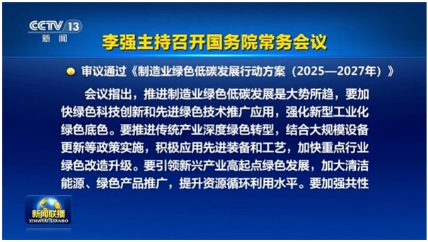5月23日,國務院總理李強主持召開國務院常務會議,審議通過《制造業綠色低碳發展行動方案(2025-2027年)》,研究進一步健全橫向生態保護補償機制有關舉措。