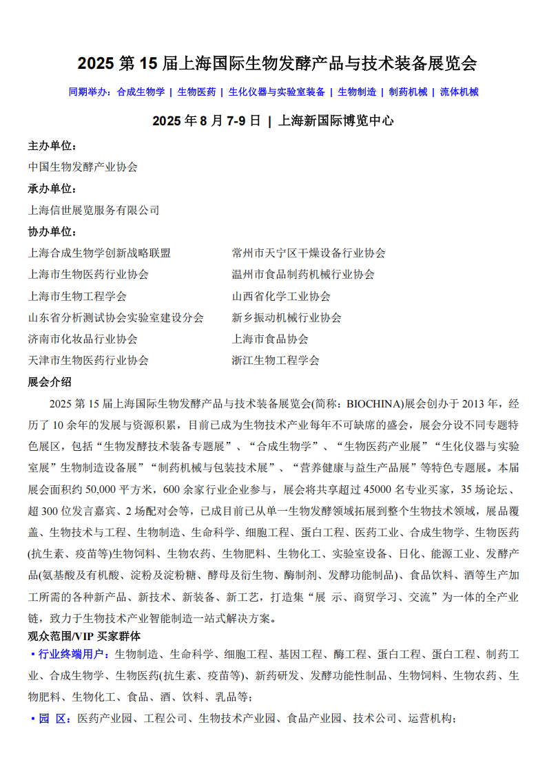 2025第15屆上海國際生物發酵產品與技術裝備展覽會