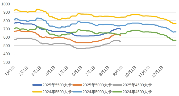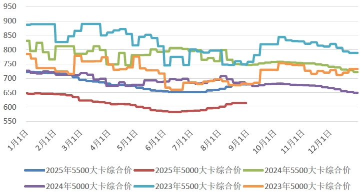 本周,南方高溫支撐火電負荷高位,但重大活動籌備疊加高耗能限產,非電需求延續疲軟。主產區強降雨、安監政策收緊、產能核驗及月度任務收尾致供應階段性收縮。需求季節性回落疊加大型集團外購價的再次下調使市場情緒進一步轉弱,終端普遍持觀望態度;坑口、港口逐日調價,中低卡煤種降幅顯著。預計后期,北方入秋后日耗拐點將現,電力需求季節性回落,南方局部高溫延緩降幅;隨著重大活動及北方汛期結束疊加優質產能釋放,供應彈性或將增強。綜合判斷,短期內終端在庫存高位、長協穩定及進口補充下,市場煤需求有限,供需基本趨于偏寬松格局,現貨價格將延續弱勢。建議繼續做好中長期合同履約,保持適量剛需現貨采購,通過優化庫存結構等措施防范風險,保障電力供應安全。同時,近期鐵路運費優惠政策面積減少、力度減弱,根據鐵路運費優惠政策變化情況,合理優化陸運煤運輸路線。