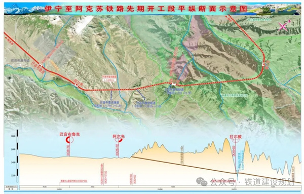 其中,鐵路方面,伊寧至阿克蘇鐵路起自既有精霍鐵路伊寧站,利用精霍鐵路向東至布列開站接軌引出,新建線路經(jīng)鞏留、新源,走行于伊犁河谷至巴音布魯克景區(qū),沿著名的獨庫公路走向通過長大隧道穿越天山,接入既有庫俄鐵路庫臺克力克站,利用并改建既有庫俄鐵路接入南疆鐵路,利用南疆鐵路至阿克蘇站。