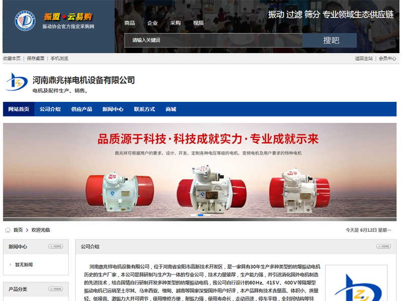 河南鼎兆祥電機設備有限公司,位于河南省安陽市高新技術開發區,是一家具有30年生產多種類型的防爆振動電機歷史的生產廠家,本公司是具研制與生產為一體的專業公司,技術力量雄厚,生產能力強,并引進消化國外電機制造的先進技術,結合國情自行研制開發多種類型的防爆振動電機,我公司自行設計的60Hz、415V、400V等隔爆型振動電機已遠銷至土爾其、馬來西亞、緬甸、越南等國家深受國外用戶好評,本產品具有技術含量高、體積小、質量輕、低噪音、激振力大并可調節,使用維修方便,耐振力強,使用壽命長,走動迅速,停車平穩,全封閉結構等特點,并適用各種制動方式,如能耗制動,反接制動等。銷量在行業中突出,相關資質證件一應俱全。公司經過國家考核認證已持有《礦用產品安全標志證書》,《全國工業產品生產許可證》、《防爆合格證書》、〉《CCC證書》等,是防爆電機行業資質較全的特種電機供應商。為方便用戶,本公司可根據用戶的要求,設計、開發、定制各種電壓等級的電機、變頻電機及用戶要求的特種電機,力求使用戶滿意。