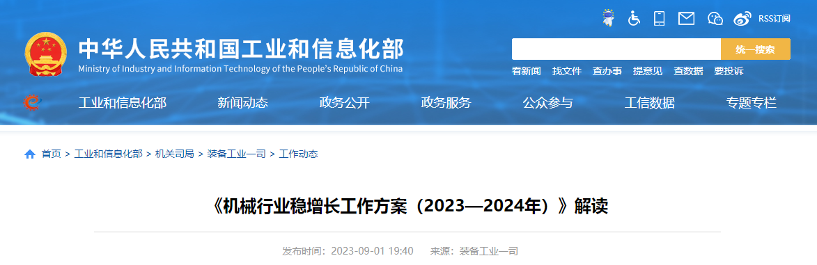 近日,工業(yè)和信息化部聯(lián)合財政部、農(nóng)業(yè)農(nóng)村部、商務(wù)部、海關(guān)總署、金融監(jiān)管總局、國家藥監(jiān)局6個部門印發(fā)《機械行業(yè)穩(wěn)增長工作方案(2023—2024年)》(工信部聯(lián)通裝﹝2023﹞144號,以下簡稱《工作方案》)。為便于理解《工作方案》,做好貫徹實施工作,現(xiàn)將有關(guān)內(nèi)容解讀如下: