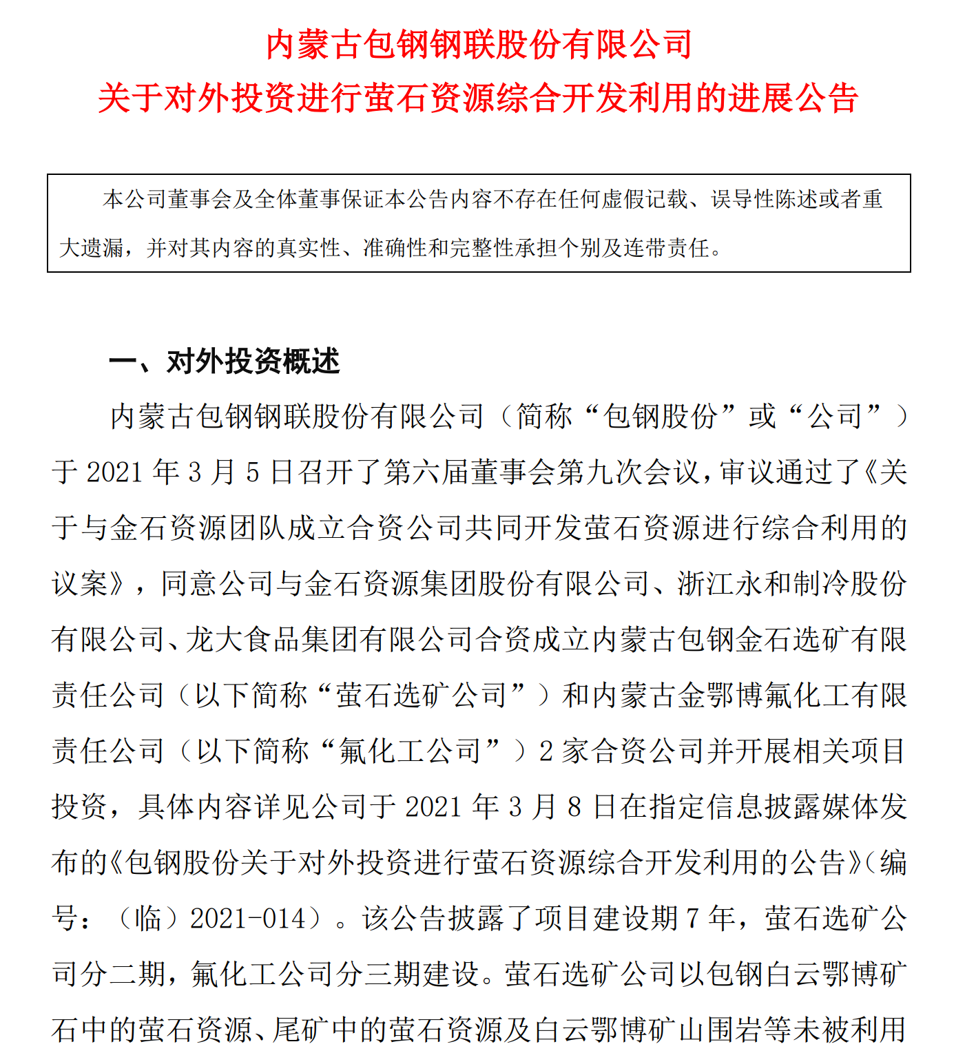 e公司記者發現,螢石選礦公司和氟化工公司,均為白云鄂博伴生螢石資源綜合利用項目。上述項目的建設進展,不僅事關包鋼股份,也涉及金石資源(603505)、永和制冷(605020)兩家上市公司。