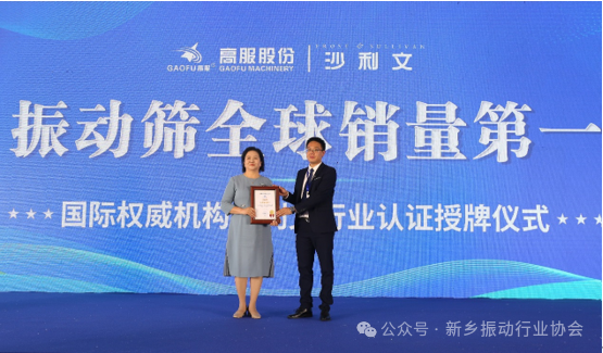 5月17日在河南·新鄉(xiāng)舉行的中原農(nóng)谷第二屆振動機械產(chǎn)業(yè)博覽會上,新鄉(xiāng)市高服機械股份有限公司(以下簡稱“高服機械”)榮獲了由國際權(quán)威認證機構(gòu)弗若斯特沙利文(frost Sullivan)頒發(fā)的“振動篩全球銷量第一”的市場地位確認證書。這一認證標志著高服機械在振動篩領(lǐng)域的領(lǐng)先地位得到了國際權(quán)威機構(gòu)的正式認可,同時也反映了公司在技術(shù)創(chuàng)新、產(chǎn)品質(zhì)量、客戶服務(wù)等方面的卓越表現(xiàn)。