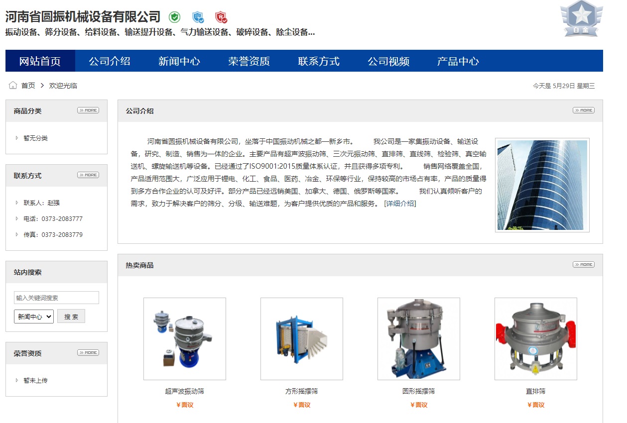 河南省圓振機(jī)械設(shè)備有限公司,坐落于中國(guó)振動(dòng)機(jī)械之都—新鄉(xiāng)市。 我公司是一家集振動(dòng)設(shè)備、輸送設(shè)備,研究、制造、銷(xiāo)售為一體的企業(yè)。主要產(chǎn)品有超聲波振動(dòng)篩、三次元振動(dòng)篩、直排篩、直線篩、檢驗(yàn)篩、真空輸送機(jī)、螺旋輸送機(jī)等設(shè)備。已經(jīng)通過(guò)了ISO9001:2015質(zhì)量體系認(rèn)證,并且獲得多項(xiàng)專(zhuān)利。 銷(xiāo)售網(wǎng)絡(luò)覆蓋全國(guó),產(chǎn)品適用范圍大,廣泛應(yīng)用于鋰電、化工、食品、醫(yī)藥、冶金、環(huán)保等行業(yè),保持較高的市場(chǎng)占有率,產(chǎn)品的質(zhì)量得到多方合作企業(yè)的認(rèn)可及好評(píng)。部分產(chǎn)品已經(jīng)遠(yuǎn)銷(xiāo)美國(guó)、加拿大、德國(guó)、俄羅斯等國(guó)家。 我們認(rèn)真傾聽(tīng)客戶(hù)的需求,致力于解決客戶(hù)的篩分、分級(jí)、輸送難題,為客戶(hù)提供優(yōu)質(zhì)的產(chǎn)品和服務(wù)。