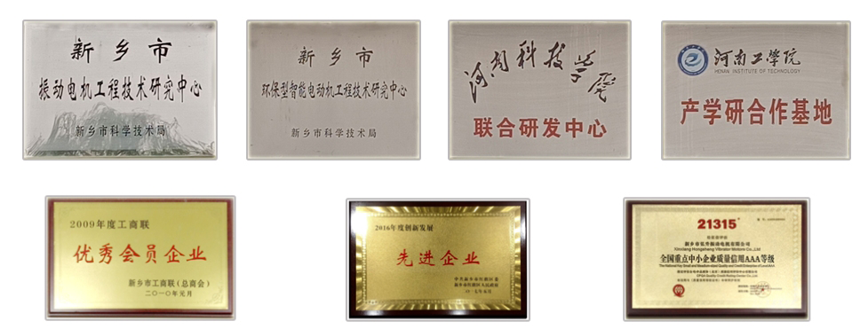 近年,公司先后榮獲新鄉(xiāng)市政府授予的“質(zhì)量效益型企業(yè)”、“重合同守信用企業(yè)”,新鄉(xiāng)市技術監(jiān)督局授予的“產(chǎn)品質(zhì)量信得過企業(yè)”,新鄉(xiāng)市科學技術局認定的“新鄉(xiāng)市振動電機工程技術研究中心”。2020年公司通過國/家級“高新技術企業(yè)”認定。