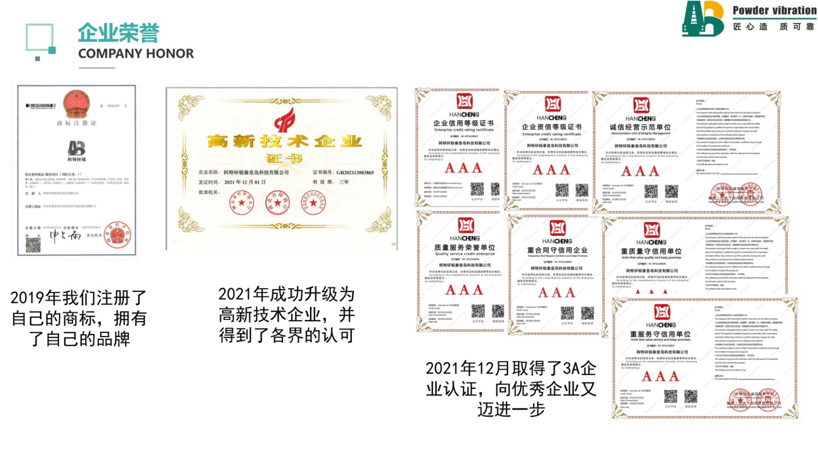 阿特钚銳 秦皇島科技有限公司(簡稱:ATBR)位于河北省秦皇島市經濟技術開發區,新建廠區總投資12500萬元,占地10000平方米,興建廠房7500平方米,研發中心及實驗室1500平方米,總計容面積15800平方米,是集研發、生產、銷售為一體的高新技術企業,致力于研發散裝固體物料的輸送技術與系統集成。公司采用獨特的設計算法、專有技術、高性能的材料、嚴格的生產工藝、數據化調試方法,制造出比肩國際先進水平的物料輸送、計量設備,服務國內外中高端客戶。