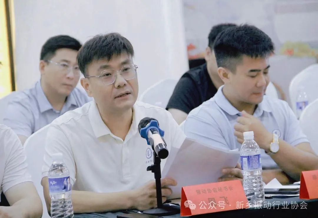 會上新鄉市工信局三級調研員曹友仁肯定了協會自成立以來所取得的成績,同時指出協會應加強產需對接工作,形成供給清單和需求清單,以此推動振動篩分設備的推廣應用和迭代升級,提升我振動篩產業鏈供應鏈韌性和競爭力。賀占胥會長就振動行業現狀和未來發展趨勢做主旨報告,監事長秦英就振動協會年度總結進行了匯報。黨支部鄭峰順強調黨建引領、發揮黨支部在協會中的核心作用,發揮黨員的先鋒模范作用,秘書長周飛就協會財務向各位理事做了匯報,并就未來半年的工作做了安排及部署。