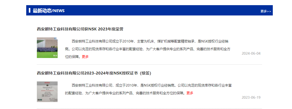 西安朗特工業科技有限公司,總部位于中國陜西省西安市,成立于2010年,主營為機床和煤礦機械及機床精密軸承,是NSK公司授權行業經銷商。我司以充足的現貨庫存和各行業豐富的配套經驗,為廣大客戶提供專業的系列產品、完善的技術服務和全方位的保障。主營電冰箱、洗衣機等家電產品、汽車、飛機以及大規模的工業機械、宇宙空間站等世界上使用的各種東西有很多都裝有軸承。NSK以“優美無限的運行與控制”為口號, 除各種軸承之外,還向全球提供汽車零部件、精密機械產品等各種產品。NSK以在軸承領域錘煉成的技術為基礎,正追求向各個技術領域發展的可能性。產品廣泛應用于農業機械、食品機械、工業電機、齒輪裝置、注塑成型機、機床、礦山/工程機械、摩托車、辦公設備、造紙機械、泵及壓縮機、鐵道、半導體、冶金設備、風力發電機工業領域。廣泛的產品陣容及服務,我們提供具有符合客戶商務需求的高價值解決方案。