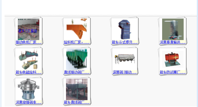 公司主要產(chǎn)品有:振動篩、振動電動機、提升機、輸送機四大系列產(chǎn)品。