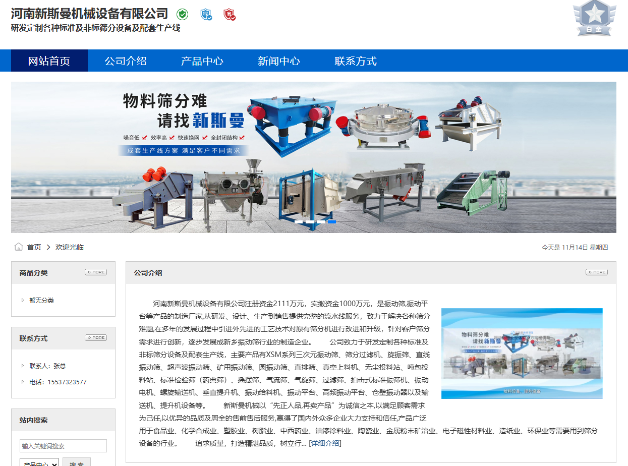 公司致力于研發(fā)定制各種標(biāo)準(zhǔn)及非標(biāo)篩分設(shè)備及配套生產(chǎn)線,主要產(chǎn)品有XSM系列三次元振動篩、篩分過濾機(jī)、旋振篩、直線振動篩、超聲波振動篩、礦用振動篩、圓振動篩、直排篩、真空上料機(jī)、無塵投料站、噸包投料站、標(biāo)準(zhǔn)檢驗(yàn)篩(藥典篩)、搖擺篩、氣流篩、氣旋篩、過濾篩、拍擊式標(biāo)準(zhǔn)振篩機(jī)、振動電機(jī)、螺旋輸送機(jī)、垂直提升機(jī)、振動給料機(jī)、振動平臺、高頻振動平臺、倉壁振動器以及輸送機(jī)、提升機(jī)設(shè)備等。