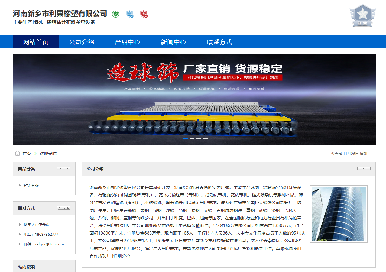 主要生產球團、燒結篩分布料系統設備,有輥距雙向可調圓輥篩(專利)、寬環式輸送帶(專利)、擺動皮帶機、寬皮帶機、鏈式除雜機等系列產品。篩分輥有復合耐磨輥(專利)、不銹鋼輥、陶瓷輥等可以滿足用戶需求。該系列產品在全國各大鋼鐵公司燒結廠、球團廠使用,已應用在邯鋼、太鋼、包鋼、沙鋼、馬鋼、泰鋼、萊鋼、首鋼京唐鋼鐵、重鋼、武鋼、濟鋼、吉林天池、八鋼、柳鋼、宣鋼等鋼鐵公司,并出口于印度、巴西、越南等國家。在全國鋼鐵行業和電力行業具有很高的聲譽,深受用戶的歡迎。