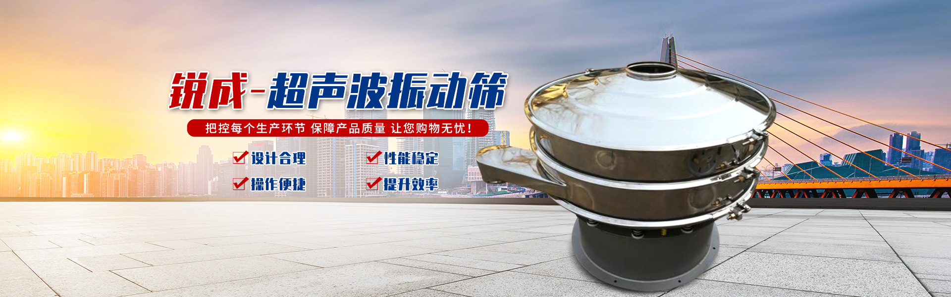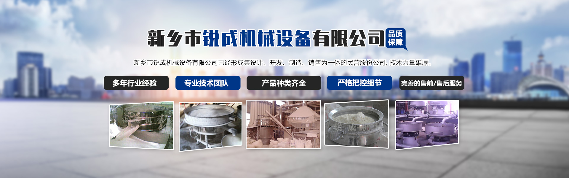 進入新的世紀,銳成人將一如既往地以雄厚的技術力量、高品質的產品、和完善周到的技術服務作為不懈進取的準則,以高素質,富有凝聚力的員工隊伍,精湛的制造工藝和完備的加工檢測設備,生產讓客戶滿意的篩分設備。