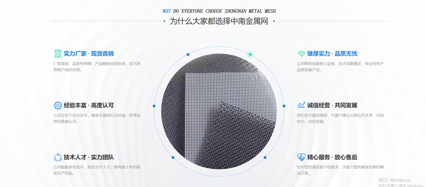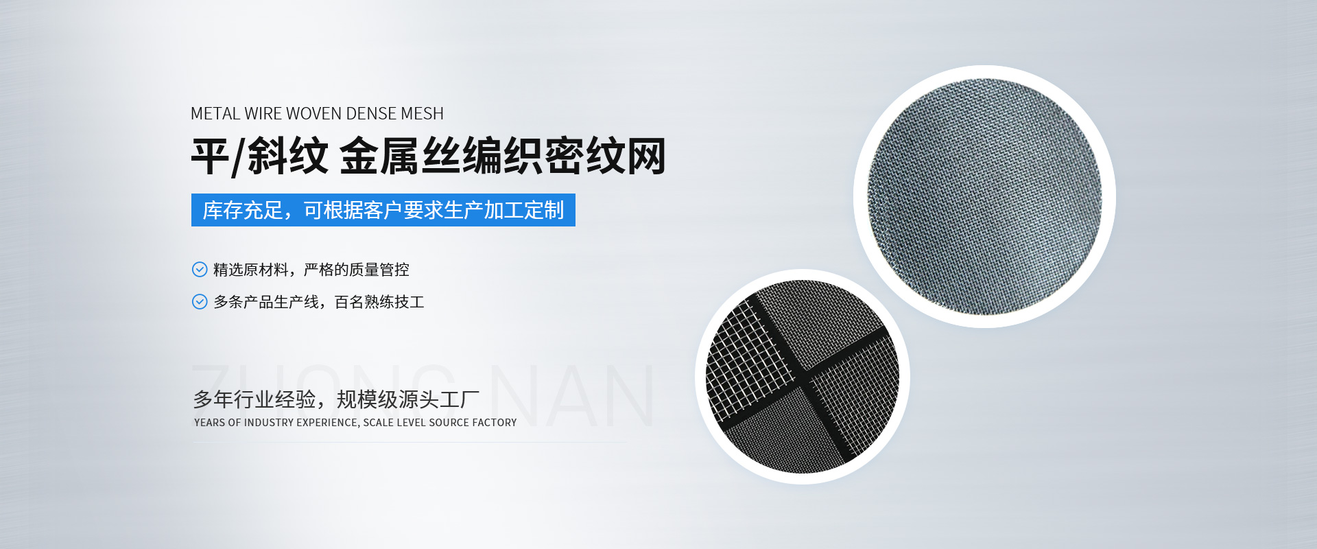 新鄉(xiāng)市中南金屬網(wǎng)有限公司成立于1999 年,公司設(shè)在河南省新鄉(xiāng)市。在過去的十幾年來,我們堅持以嚴格的管理措施、雄厚的技術(shù)力量、良好的工藝設(shè)施,質(zhì)量上乘、信譽為上為原則,把樹立良好的企業(yè)形象為工作宗旨,歷經(jīng)市場的嚴峻考驗并贏得廣大用戶的一致好評。金屬絲網(wǎng)編織結(jié)構(gòu)形式有平紋和斜紋兩種方法,嚴格按照航空軍品標準HB1862—93和標準GB/T5330—2003標準,并等效采用國際標準ISO9044—90標準組織生產(chǎn)。