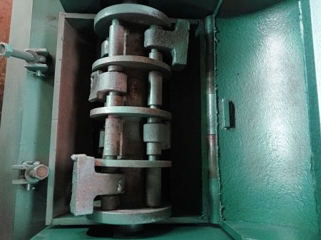 當錘式破碎機工作時,電動機驅動轉子,轉子運動,是錘子高速旋轉。物料進入破碎機之后,收到快速旋轉錘的沖擊而破碎。而較大的材料再次沖擊破碎,最終產品通過機器下面的出料口出來。粒度的大小均由篩篦的大小來控制。變更篩篦的空隙大小,即可獲得不同的粒度。產量的大小也與篩篦孔成正比。