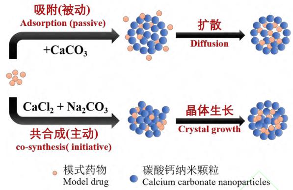 碳酸鈣載藥體系的研究主要分為碳酸鈣微球和碳酸鈣復合材料兩類,藥物的負載可通過共合成法或吸附法實現。共合成法是在碳酸鈣制備過程中加入藥物,并通過共沉淀或共結晶的方式包埋藥物;吸附法則是在碳酸鈣制備完成后,將其浸入藥物溶液中,利用表面吸附和孔隙滲透負載藥物。