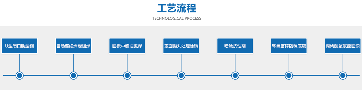 面板中縫:埋弧焊,表面拋光除銹,噴涂抗蝕劑、環氧富鋅防銹底漆、丙烯酸聚氨酯面漆。